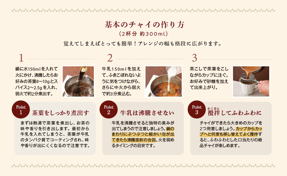 お気に入りのチャイがあれば、いつものおうち時間がもっと特別なものに変わるはずです。